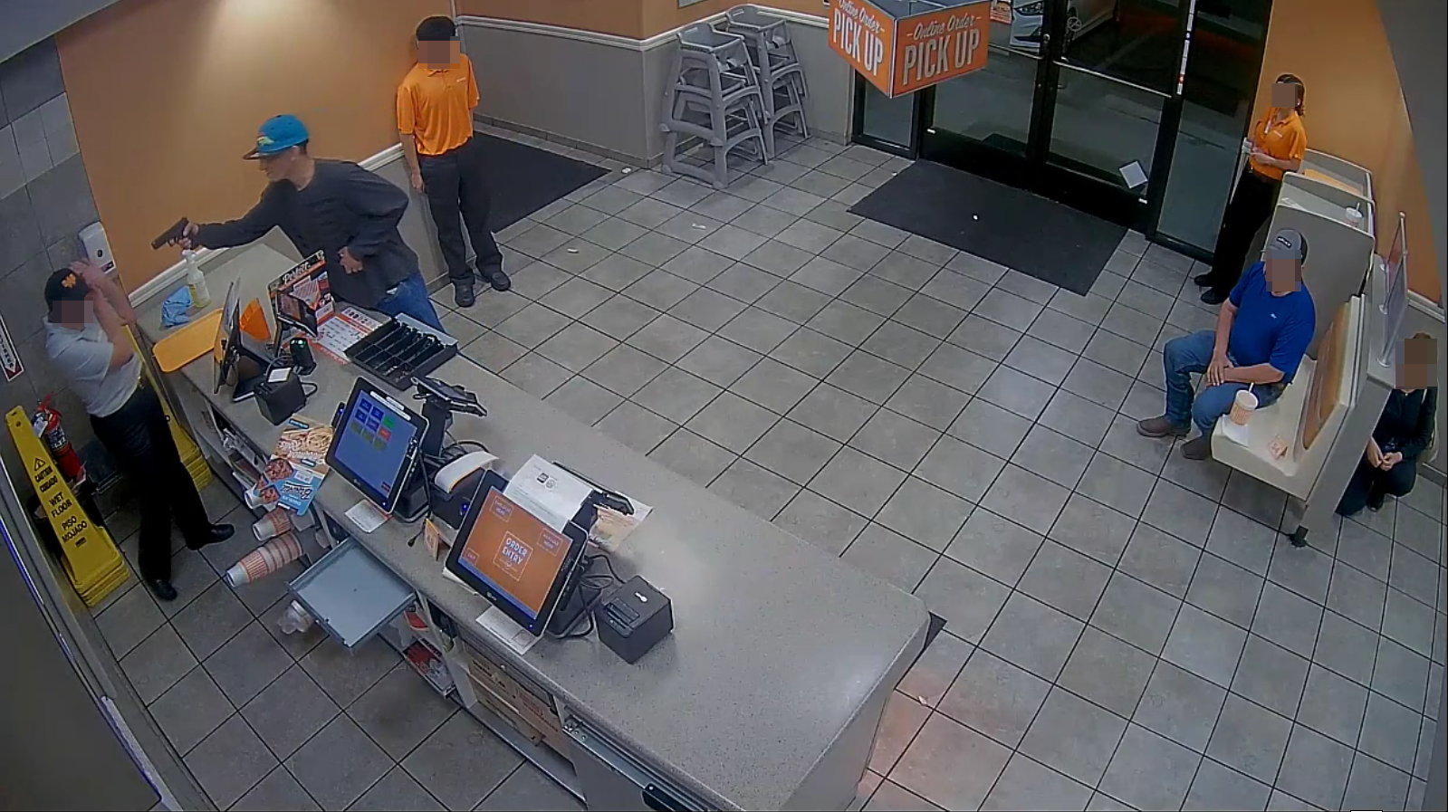 De acuerdo con documentos judiciales, el 10 de junio de 2023, Jonas Brandon Sánchez, de 40 años, ingresó armado a un restaurante Whataburger local. Durante el asalto, disparó su arma dentro del establecimiento y robó $60 en efectivo. Cuando un empleado intentó salir del lugar, Sánchez disparó contra una pared, poniendo en riesgo la vida de quienes se encontraban presentes.