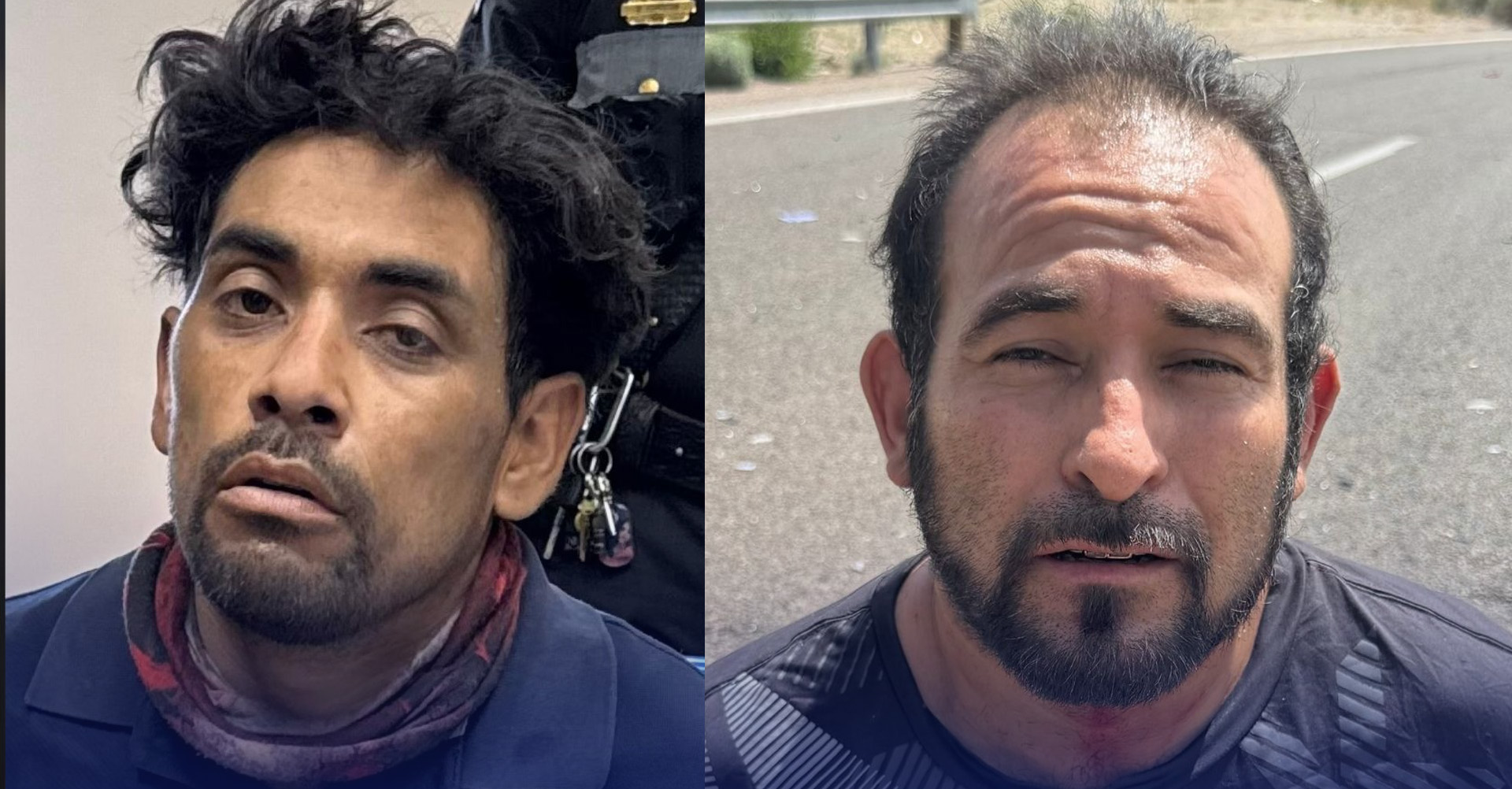 Los sospechosos, identificados como Miguel Peña-Guardado (conductor) y Maclen Suárez-Villalobos (pasajero), fueron arrestados y trasladados a un hospital para ser atendidos por sus lesiones.