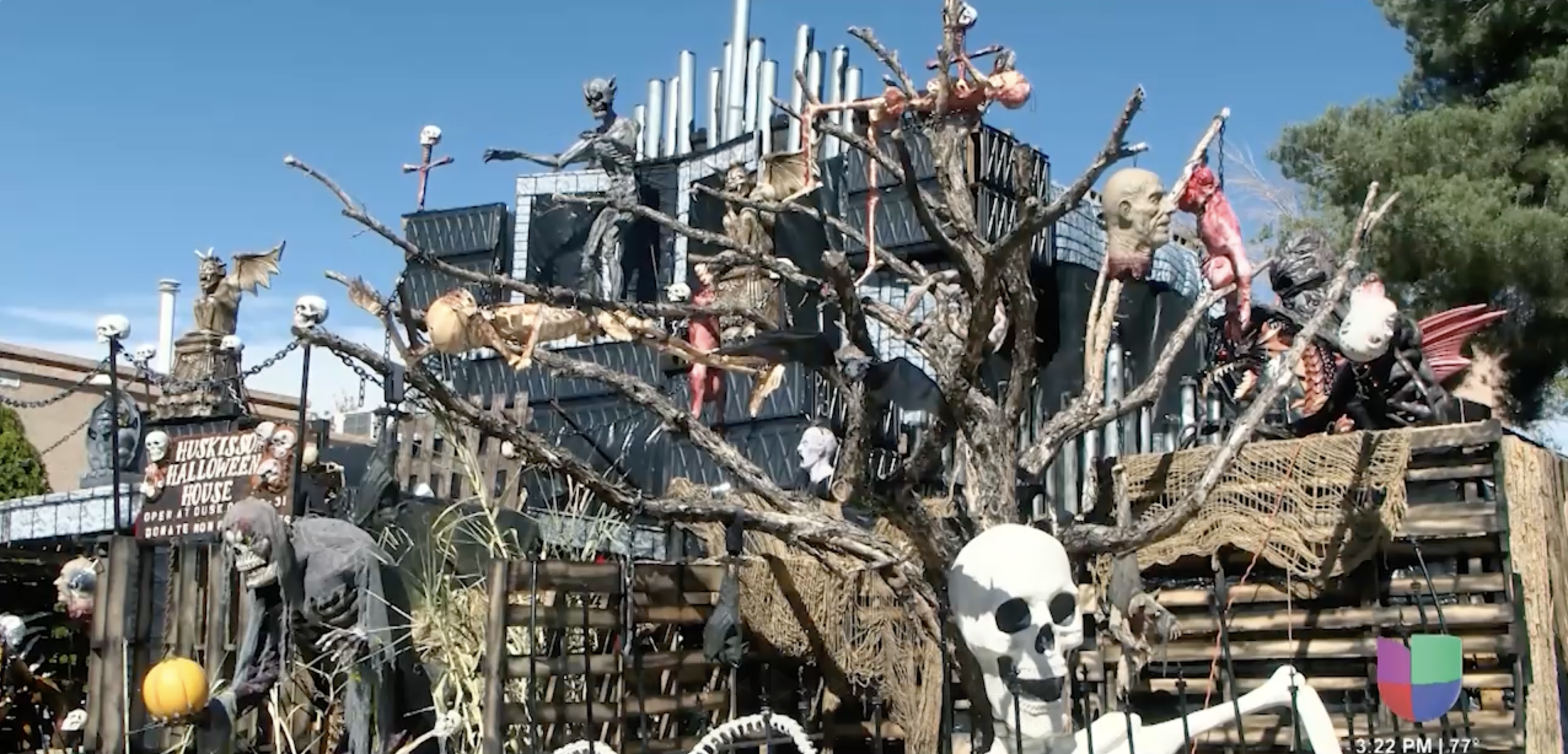 ALBUQUERQUE, Nuevo México – En el noreste de Albuquerque, una casa ubicada en el 7725 de la avenida William Moyers se ha convertido en uno de los destinos más populares de la temporada de Halloween. Con más de doce años de historia, la Casa Huskisson atrae a cientos de visitantes cada octubre con su elaborado laberinto embrujado, lleno de animatrónicos, luces, sonidos y una causa solidaria que va más allá del susto.