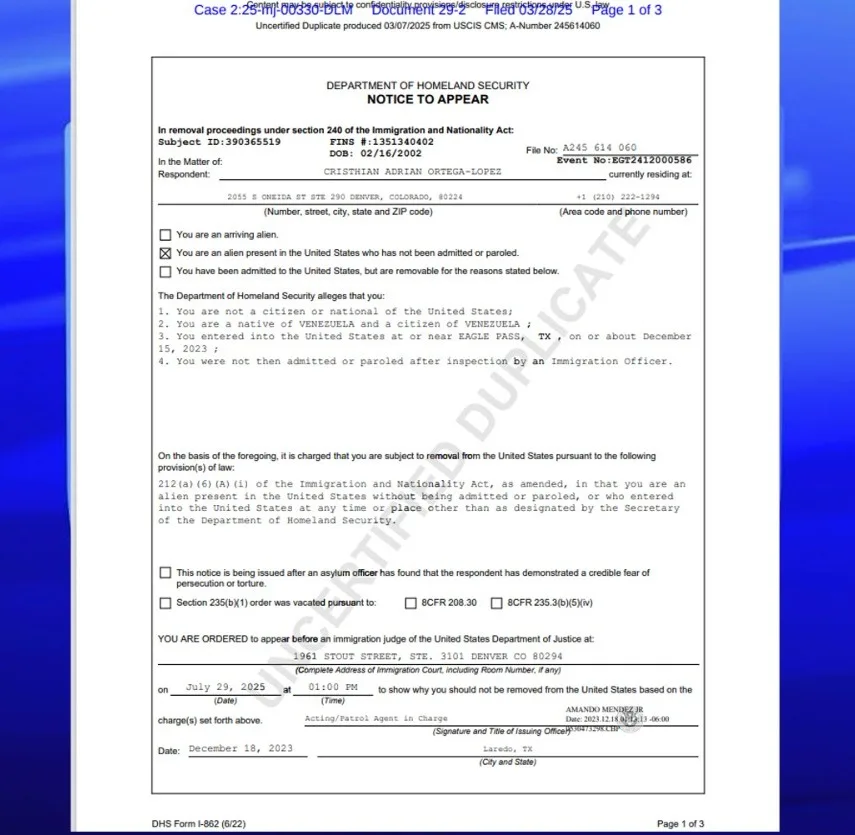 La afiliación no se basa solo en su aspecto o en su origen. El documento judicial detalla que los agentes encontraron tatuajes con símbolos asociados a la pandilla, ropa con emblemas específicos, y lo más contundente: mensajes de voz y textos electrónicos ubicados durante la investigación, donde Ortega-López se comunica con otros presuntos miembros del grupo criminal.