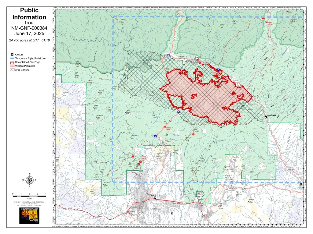 SILVER CITY, Nuevo México – La gobernadora de Nuevo México Michelle Lujan Grisham emitió una declaración de estado de emergencia, además de asegurar un fondo de respuesta para el incendio forestal Trout que esta en el Bosque Nacional Gila.
